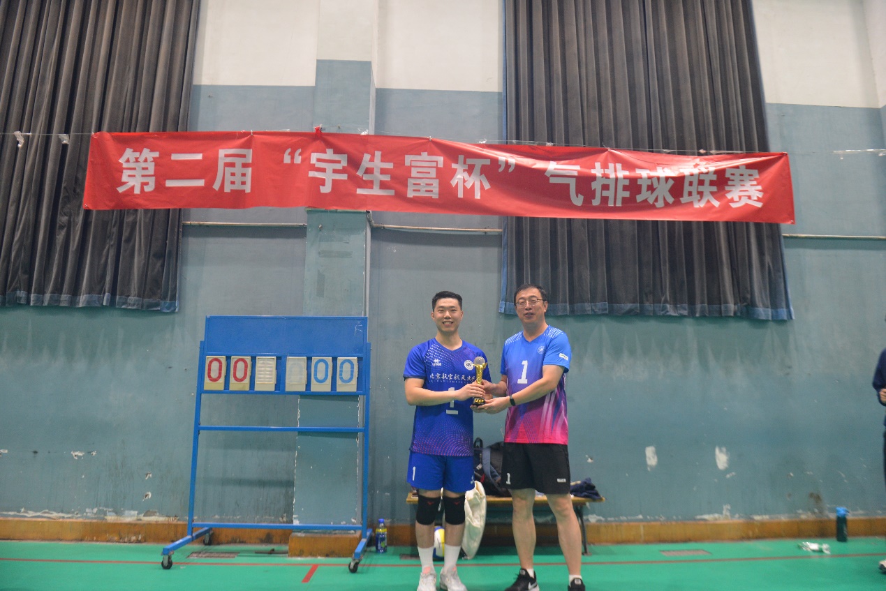 决赛中遭遇实力强劲的北航校友队,校友队由多名毕业于北航的专业运动员组成,无论是身体素质还是技巧战术都是顶尖的水平。第一局比赛一度以20比16的比分率先拿到赛点,但北航队伍也没有轻易放弃,顽强拼搏下连续挽救4个赛点,最终以22比20的比分完成惊天逆转。第二局校友队展现出强大的实力,强势扳回一城,将悬念拖入决胜局。决胜局中双方你来我往难解难分,最终由北航一队两个强势的拦网结束了比赛,获得了这来之不易的冠军。