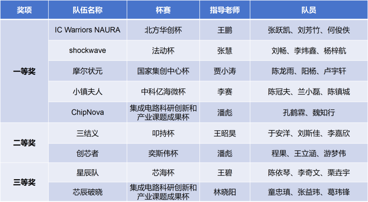 8月24日,第九届全国大学生集成电路创新创业大赛(简称“集创赛”)全国总决赛圆满落幕。作为全国大学生集成电路领域唯一A类学科赛事,本届赛事吸引了全国众多高校参与,而我院学子凭借扎实的技术功底与出色的创新能力,在全国舞台上斩获佳绩,最终获得全国一等奖5项、二等奖2项、三等奖2项,北京伊人99获评赛事优秀协同组织奖,以硬核实力书写了我院在集成电路领域的创新答卷!