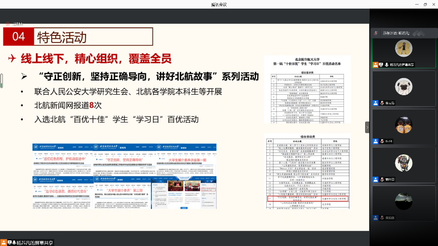 活动第二部分为先进党员事迹分享交流,两个支部的优秀博士生党员分别对自己的事迹进行了交流分享。仪器科学与光电工程学院博士生党员卢阳分享了他作为北航研究生支教团成员,在西藏支教的经历,并鼓励两个支部的博士生党员积极参与志愿工作,做德才兼备的北航人,在祖国最需要的地方绽放青春之花。集成电路科学与工程学院的博士生党员李赛,结合对“十四五”规划和十九届五中全会精神的解读,和大家分享了集成电路在我国面临的机遇和挑战,以及她的科研和抗疫经历。