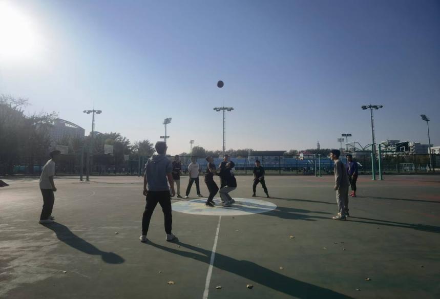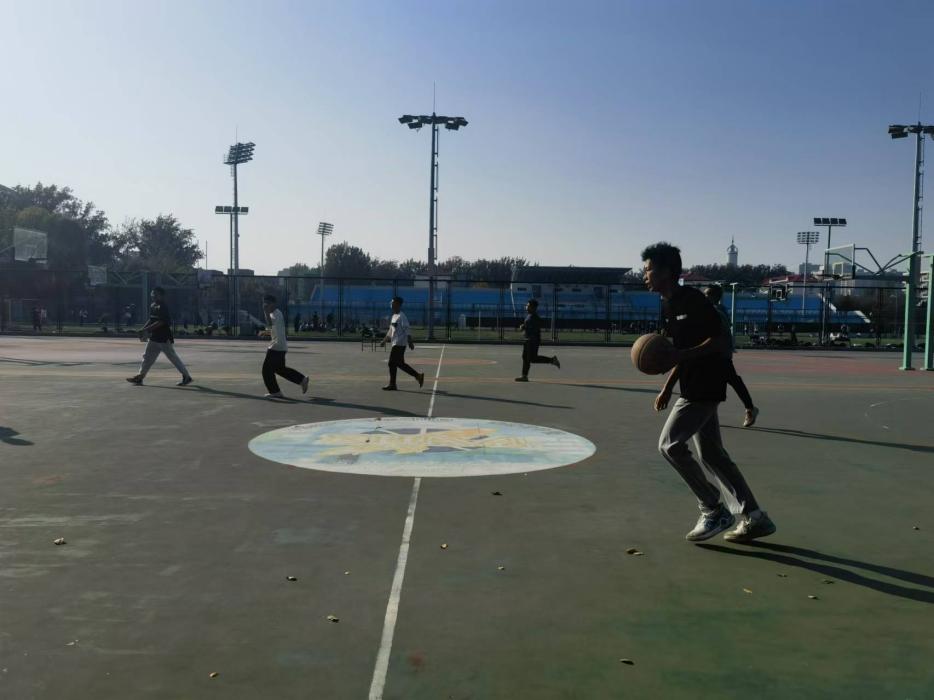 大三队员率先发起进攻,主力带球冲向对面篮板;大一队员奋起拦截,默契配合,顺势反攻。前两节比赛双方互不相让,比分咬得较紧。下半场易边再战,高密度的进攻与一次次竭力冲出重围让双方队员都已有些身体上的疲劳,但队友的互相鼓励让球员的斗志始终昂扬。