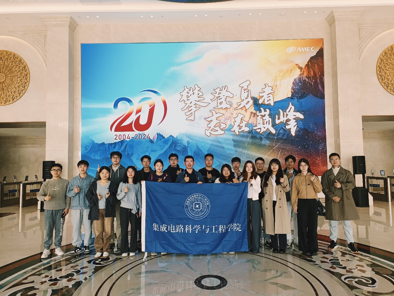 为推进我国质量强国战略发展添砖加瓦,感受新时代的伟大事业和重大成就,在实践中认识行业、了解产业,北航集成电路科学与工程学院开展专业行第一期活动。2024年10月23日,集成电路科学与工程学院17名硕士研究生在杨怀文老师的带领下赴上海浦东区中微临港产业化基地开展参观实践活动。