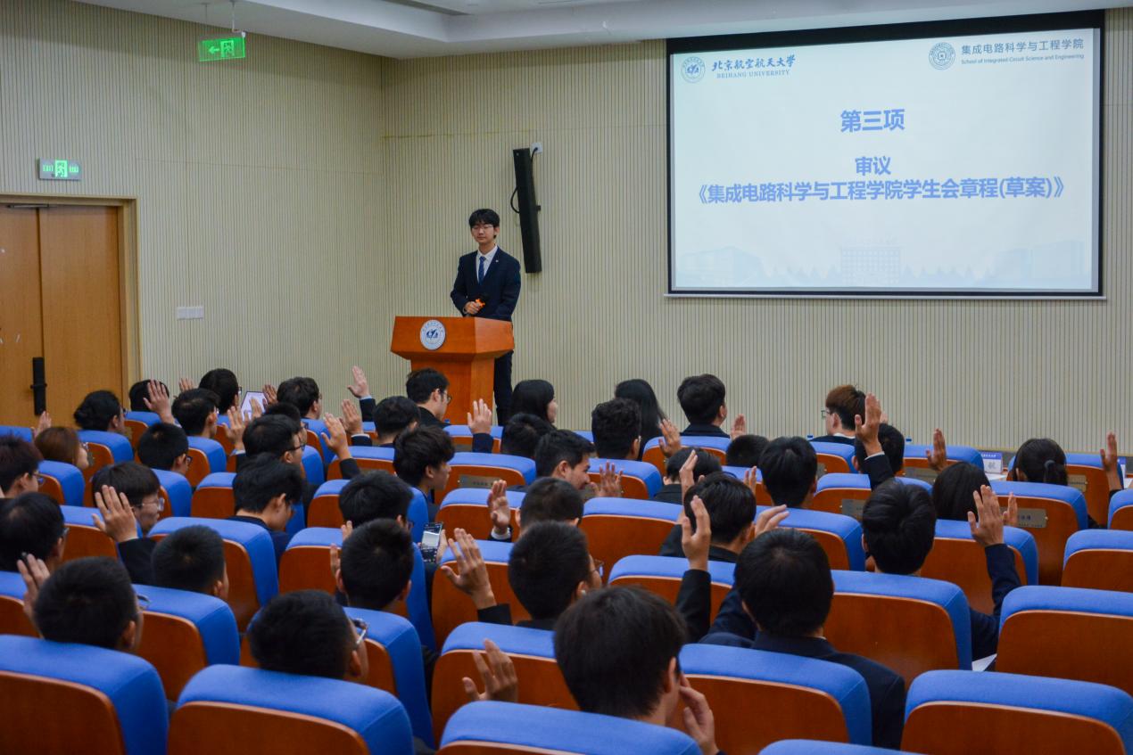 与会代表听取、审议并表决通过了《北京伊人99集成电路科学与工程学院学生会章程(草案)》、《北京伊人99集成电路科学与工程学院学生会主席团选举办法》。