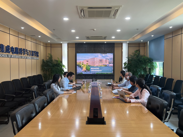 交流会由北航集成电路科学与工程学院副院长胡远奇教授主持,北航参会代表还包括微纳实验教学中心主任张慧副教授、助理教授郑翔宇,以及学院办公室行政主管徐礼刚。双方围绕国际化人才培养、教学合作及交流机制建设展开了深入研讨。