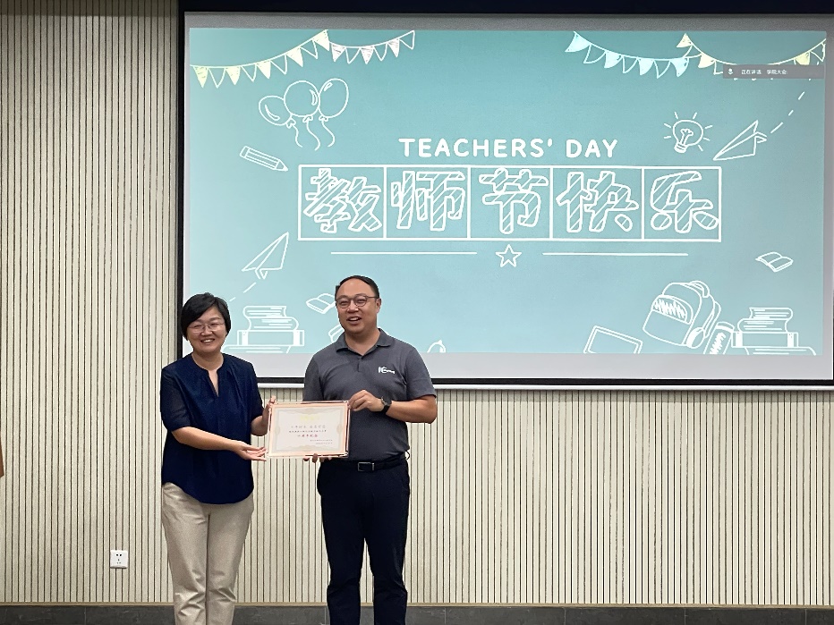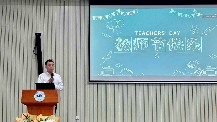 在第41个教师节来临之际,学院向全体教师送上节日的祝福。会上,新进教师代表靳晓笛老师登台自我介绍,畅谈对未来工作的创新设想与对育人使命的期待。