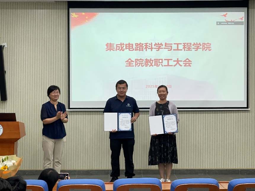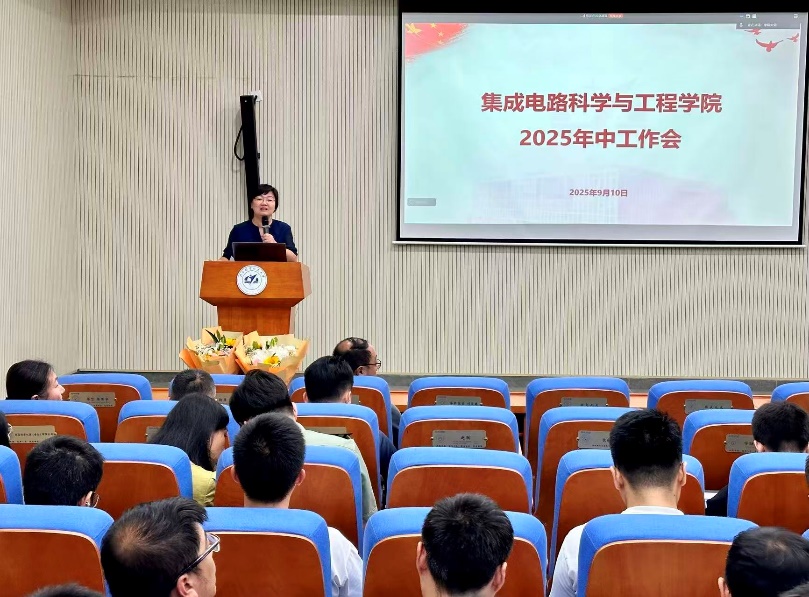 9月10日下午,集成电路科学与工程学院召开2025年中工作会暨教师节全院大会,传达学校2025年中工作会精神,回顾上半年重点工作落实情况,紧扣新形势新要求,科学部署下半年重点任务。大会由学院党委书记高静主持,学院领导班子及全体教职工参加了此次会议。